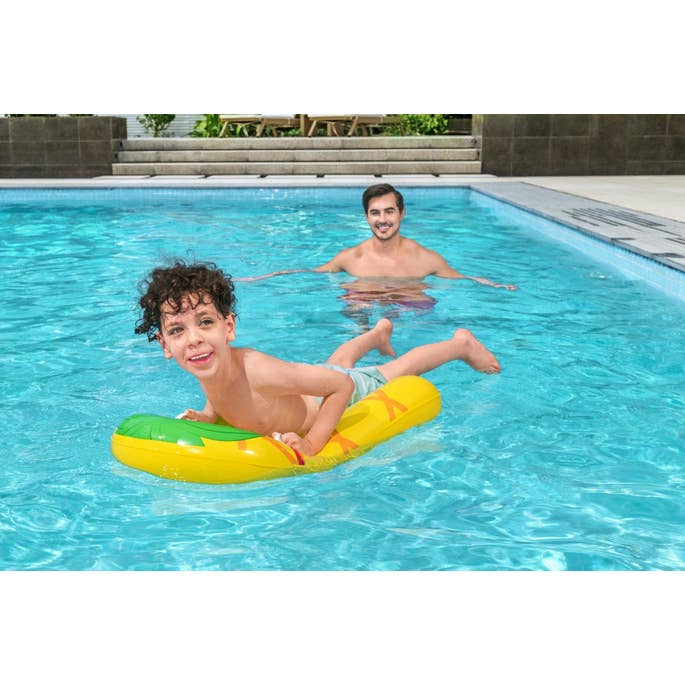 Il "Surf Buddy Pool Rider" è caratterizzato da design divertenti e colorati, spesso a tema frutta (come ananas, fragola, cactus) o con faccine amichevoli, che lo rendono irresistibile per i bambini. Non è una ciambella tradizionale, ma una sorta di "bodyboard" gonfiabile su cui i bambini possono sdraiarsi o sedersi.